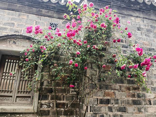 到了老门东。鲜艳的花朵与古旧的青砖墙壁互相映照。因地处南京城南门(即中华门)以东,故称“门东”,与老门西相对,是南京夫子庙秦淮风光带的重要组成部分。