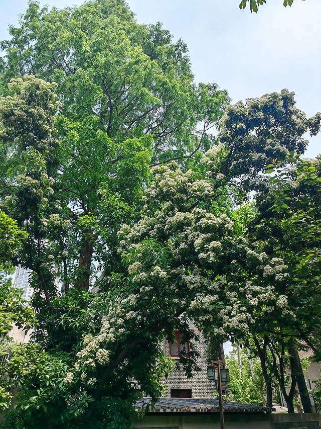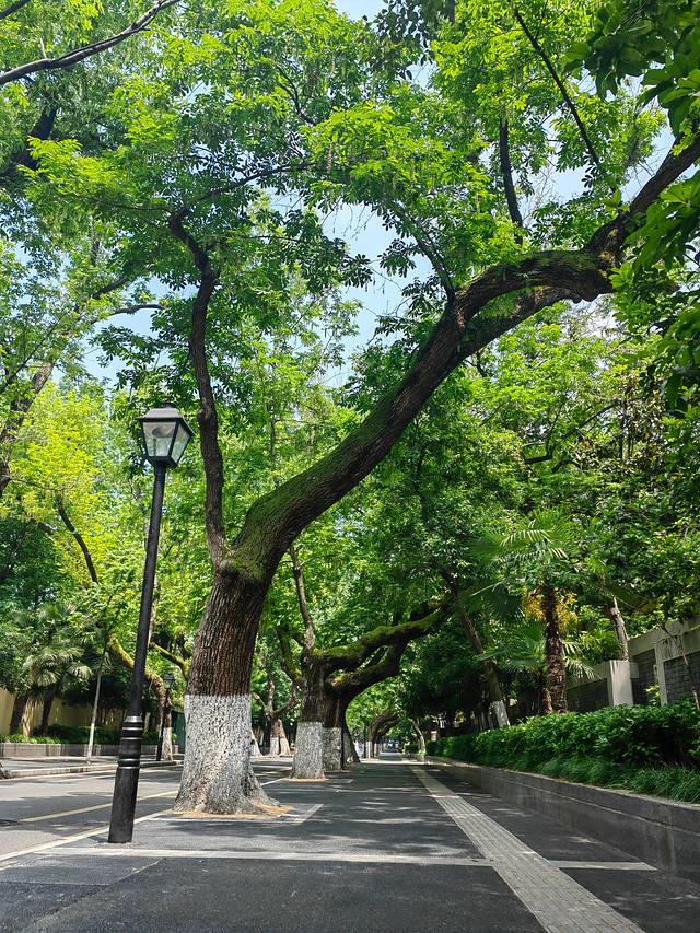 宁海路,两旁的枫杨树和建筑都在静谧中。