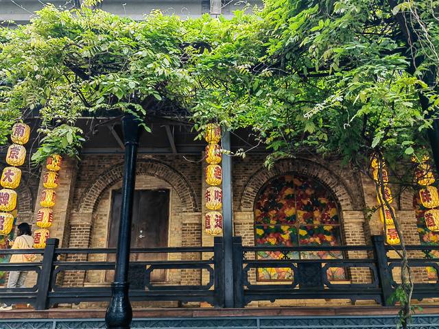 门东水铺,经营着糖水。砖墙立柱,雕镂精湛,藤曼绕屋。