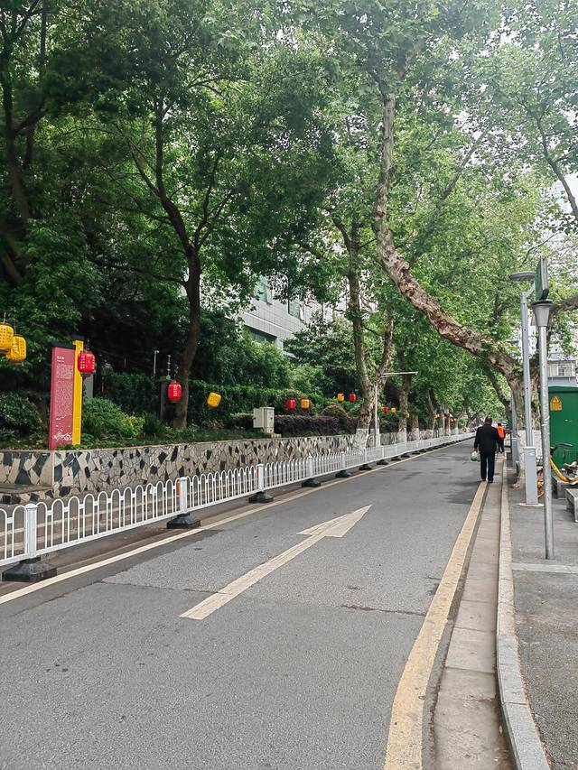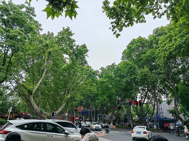 中山东路。南京行道树多为法国梧桐,大树林立。路不算宽,但不怎么堵。