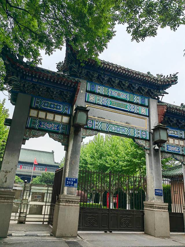 原国民政府旧址。1936年建成。全国重点文物保护单位。大门为一座三开间的牌楼式建筑,三楹四柱。