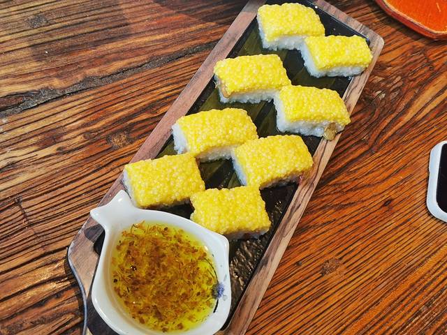 洪武记,平遥最火爆的晋菜馆,一到饭点就会排起长长的队伍,人多的地方味道一定也不差。他们家的才我最喜欢的还是黄米凉糕,味道就不多说了,酸酸甜甜软软糯糯,喜欢甜食的都会喜欢它,它的颜值也是很惊艳的,黄白配色再搭上晶莹的桂花酱,让人看见就忍不住流口水。