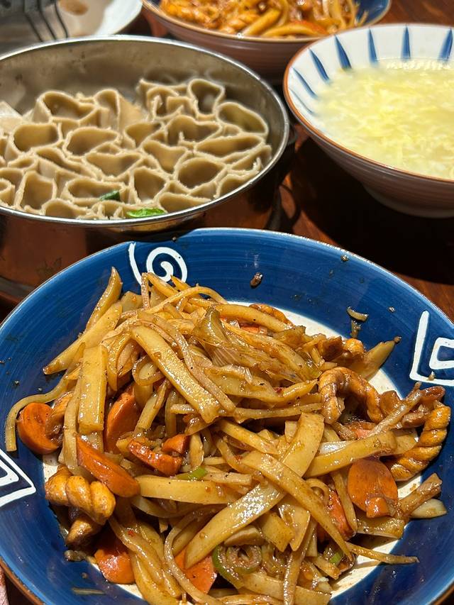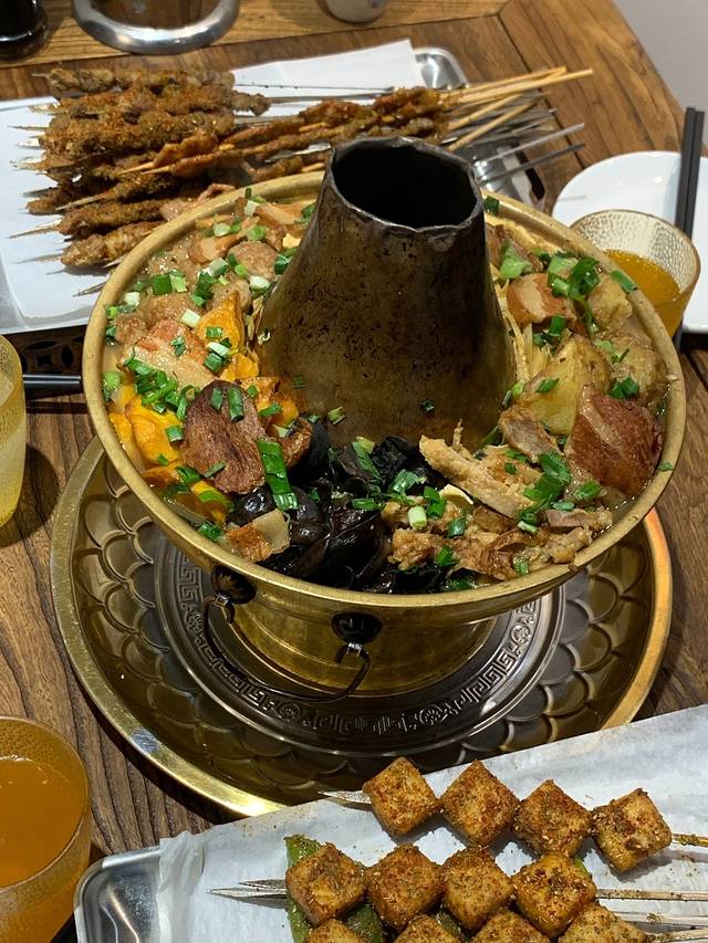老赵家山西铜火锅,铜火锅又叫“旱火锅”,是以前山西人过年的时候会吃的。和川渝地区的火锅不一样,铜火锅里烧肉、丸子、土豆、白菜等食材堆得满满的,吃到最后汤也是可以喝的,这家还有秘制的蘸料,绝对好吃。