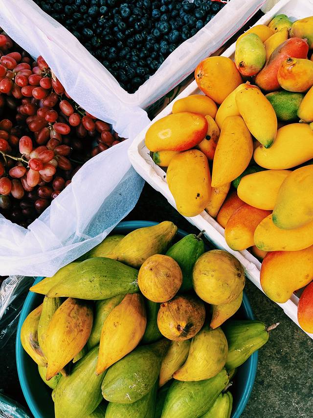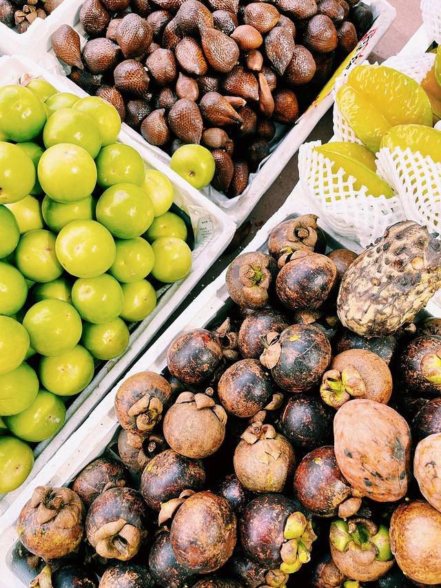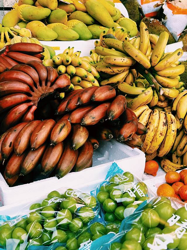 先来说说版纳的水果,版纳随处可见水果摊,还可以全国包邮。热带水果的种类真的太太太太太多了,还大部分是自己从来没有见过的品种,当然价格也都很便宜,由于个子小食量小,因此吃不下太多水果,只尝试了香蕉、木瓜、芒果、橘子、菠萝、菠萝蜜、椰子等日常种类,但是都特!别!甜!划重点,这里的菠萝也一点酸涩味儿都没有,完完全全是清甜口感的,菠萝又小又圆,真是可爱死啦!