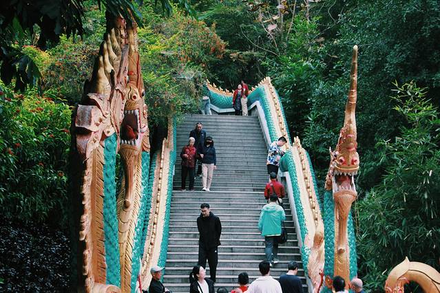 从曼听公园走入总佛寺,注意不能穿露肩的无袖傣服哦,最好拿着外套穿上,充分尊重当地人的信仰。