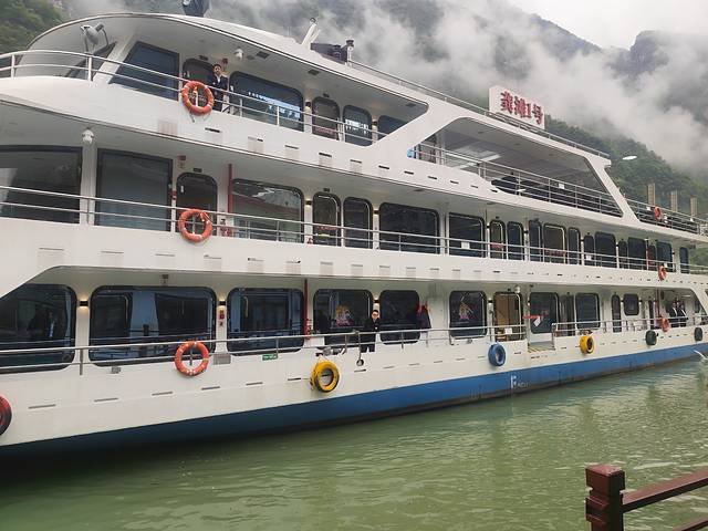 船票提前一天预定好的,我们算好时间8:30进入码头正好遇上第一班大船(乌江画廊一号)大船当然比小船风景好啊,:船是大小轮发。今天是5月2号,我们去的比较早很顺利登船了,今天游客很多,我们出来看到坐船已经排上长队了,估计排队都得等上一小时。上船点即下船点。
