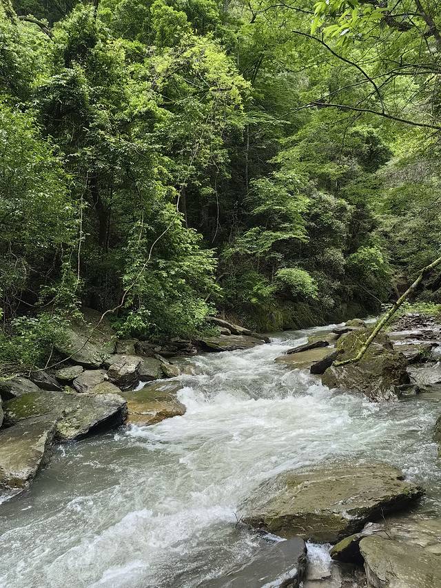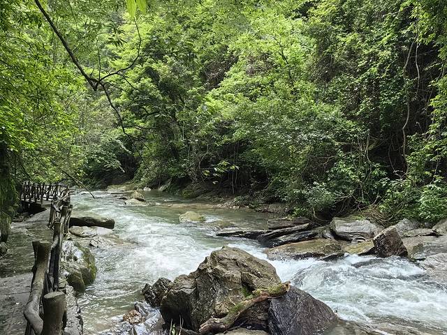 曲幽谷,一条清澈的溪水从峡谷中婉蜒穿过,延绵十里,时而文静、平缓,时而激瀑飞扬。