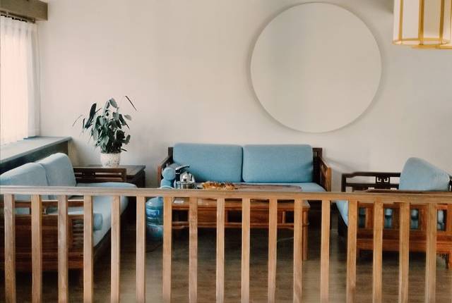 上古典淡雅的室内风格,住起来特别舒适,原木的素色、清晰的纹理、随意的形态,无不勾勒出自然的气韵与情致,躺在柔软舒适的大白床。