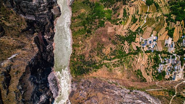 到达中虎跳又是不同风光,找家景观餐厅对着峡谷享受午餐,峡谷的壮丽景色与美食的满足感交织在一起,nice。
