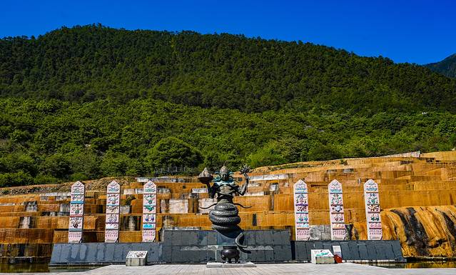 白水台就在酒店上方,于是第二天一早,我们就直接奔赴白水台。这里据说是纳西族东巴教的发祥地之一。