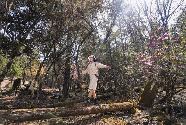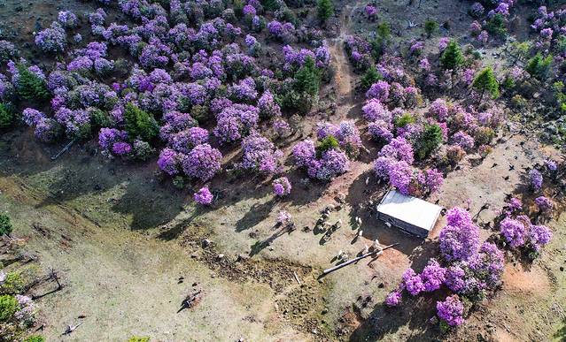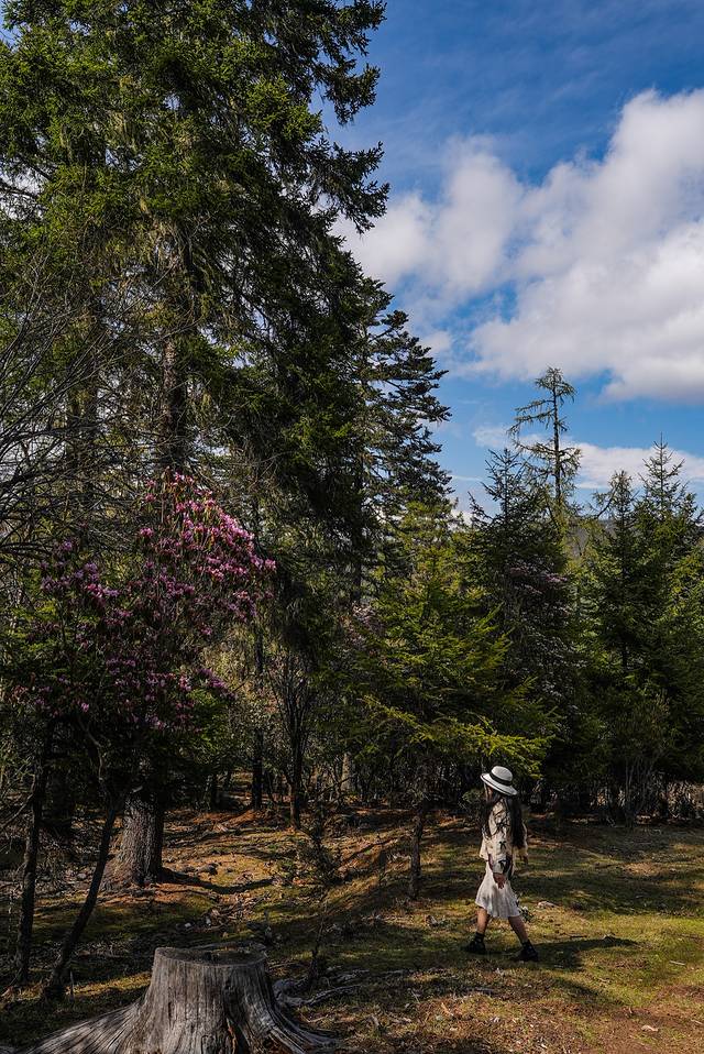 我们大概是第一波来香格里拉追花海的人了吧!5 月开始,香格里拉各地的杜鹃花相继绽放,有大杜鹃、小杜鹃、高山杜鹃、林中杜鹃、大树杜鹃、矮杜鹃……成片成片地怒放在路边、林间、溪水畔,简直美得“不可方物”!