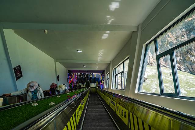 随后前往上虎跳,抵达景区后我选择了一条省力路线——扶梯直接下到景区徒步。