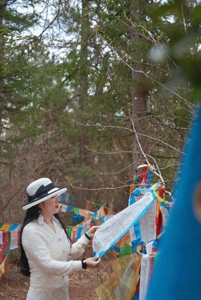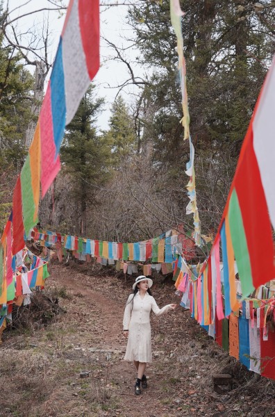 在通往活动现场挂满经幡的森林之路上,我静静的体会着这的美好。