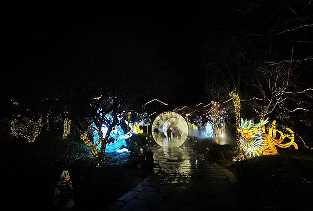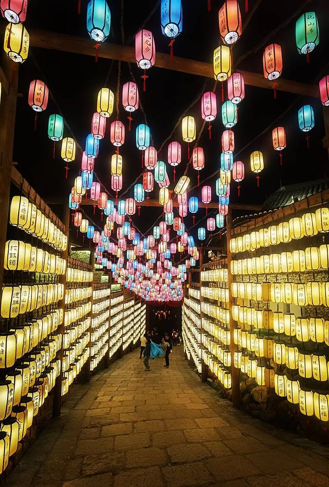 夜深了!村里依然斑驳迷离,流光溢彩,当你身着汉服、提灯移步在仙气弥漫的桥畔林间、花灯簇簇的街巷深处,沉浸式体验一把古时游园盛会的感觉,此时此刻,是你最真、最炫、最浪漫的时刻。