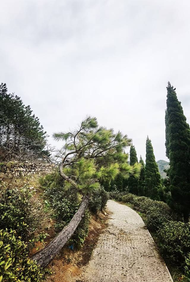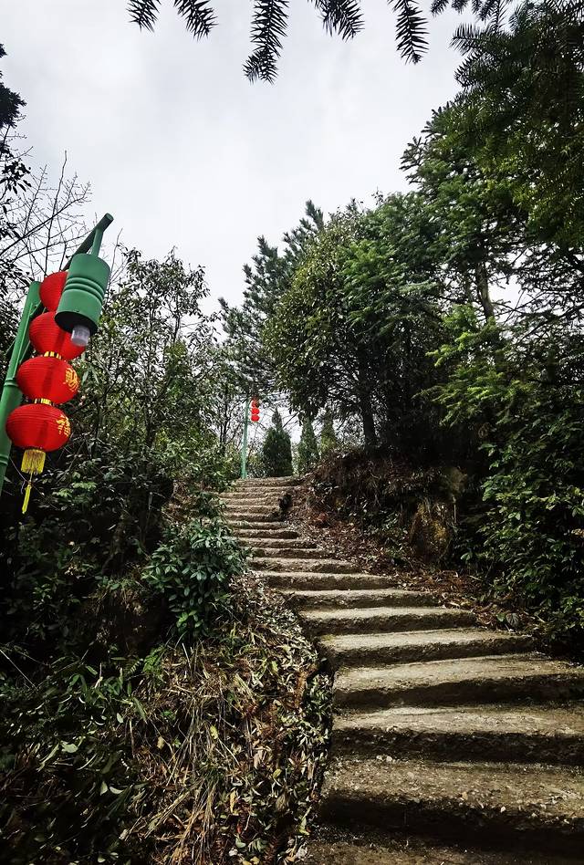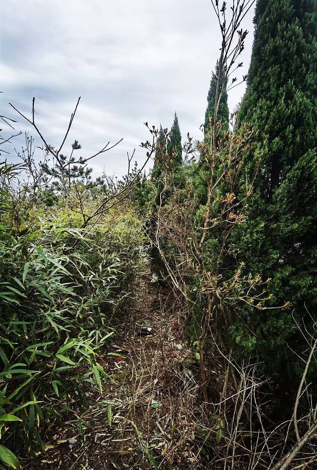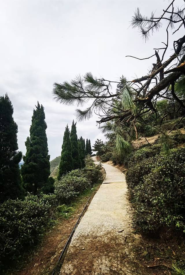 转山的时候,发现山上有两条野路,一条是观道亭旁的野路。这条野路在观道亭一侧的悬崖边上,悬崖两边都是茂密的树林,林中一条被人踏出来的小路,蜿蜒着伸向前方,估计是山民走的野路,这条野路没有圈挡,感觉有点危险,不敢深入;另一条是碑林旁的野路。碑林旁是一个岔路口,一边往飞升台方向,一边往野路方向,这条野路不危险,视野很开阔,远处山峦,近处茶园,野路上倒也有姿色些许,可以走过去看看风景的,但不要走的很远,走到有个破山墙边,就不要再往前继续了!因为墙上贴着提示;前方路杂林密,容易迷路。还是乖乖的折返回走吧!如果有当地向导带路,我倒是很愿意走一走这条野路下山的。