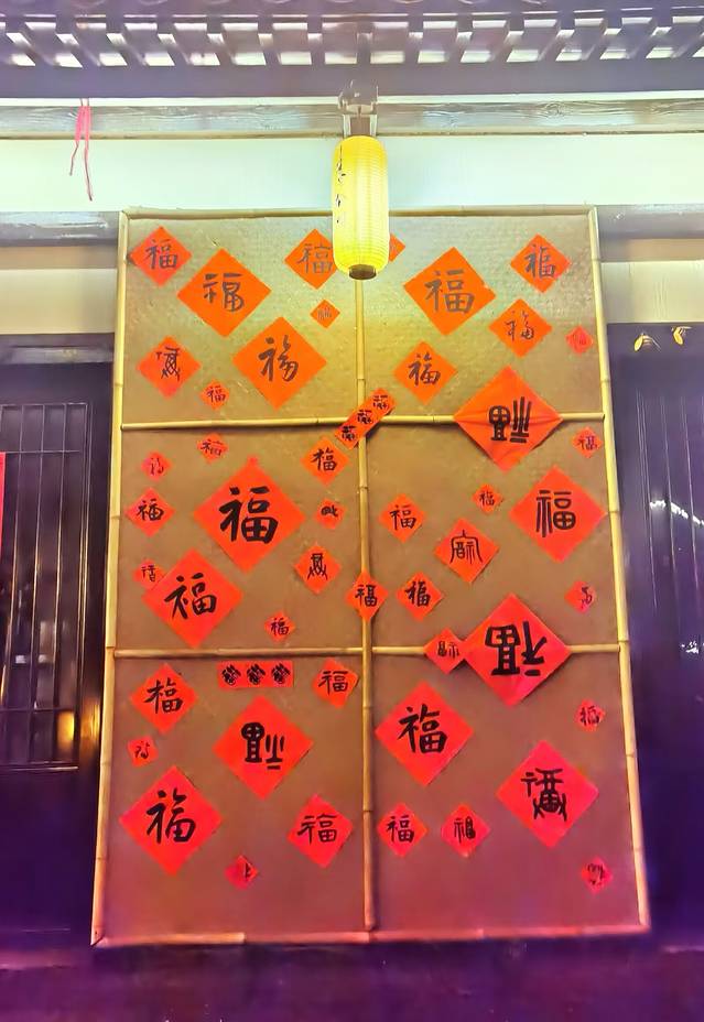 1、镜头里的门。这是一扇竹门,门上贴了很多不同的福字,门上方的一盏灯把这扇门照得通亮通亮,当我第一眼看到这幅画面时,感觉就是幸福之门被照亮了,第二眼再看一下时,觉得是“竹”福临门了!接着再仔仔细细看的时候,这幅画面竟然让我读到了一种超凡脱俗、高风亮节的寓意。中国民间至今还流传着一句经典俗语:“朱门对朱门、竹门对竹门”,这两种截然不同的门,代表了两种迥然相异的世界。我镜头里的门,我想表达的意思是: 也许我会羡慕朱门的奢华富贵,但我会更欣赏竹门的质朴无华。这幅画面拍摄地点:葛仙村灵宝仙街中段。