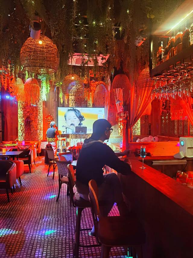 我们到这家酒吧的时候,酒吧里空荡荡的,就我们这一拨人,我们跟酒吧小伙计说,我们人气很旺的!走到哪带到哪!小伙计将信将疑,后来终于信了我们!因为没过多久,酒吧里就陆陆续续来人了,有人气了!我们喜欢的斩歌的环节终于可以开启了。我问了来这个酒吧的人怎么来这家的,说是听见歌声,寻声而来。哇靠!我们的歌声有那么魅力么?!瞬间~有点飘……酒吧小伙计是个实在的人,免去了我们¥30.00一首歌的费用,数数指头:如果唱了10首歌,那就是省下了¥300.00!如果唱了20首歌,那就是省下了¥600.00!如果……嘎嘎~