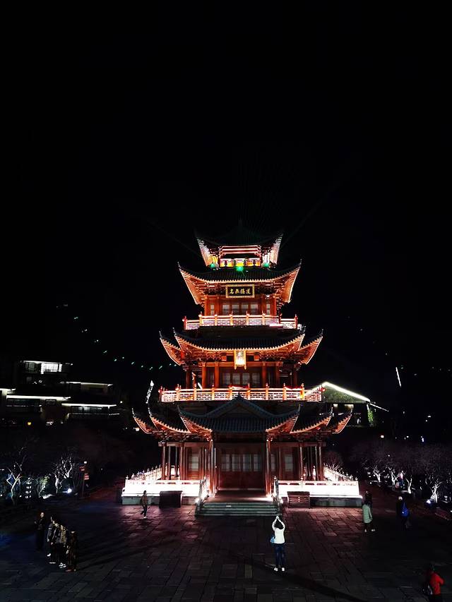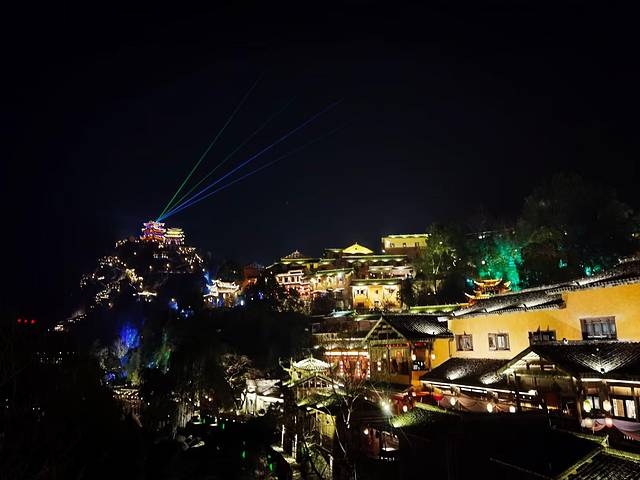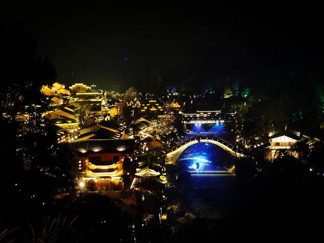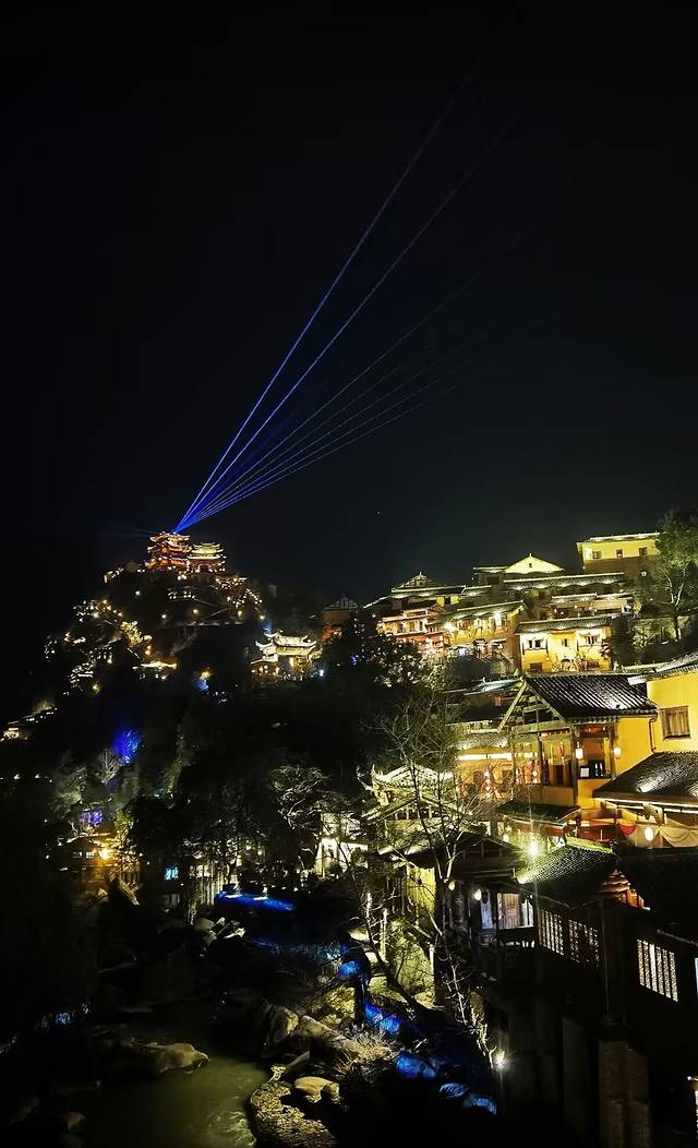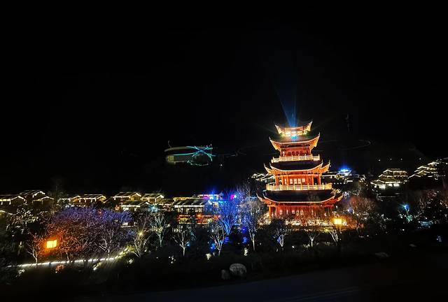当悬崖顶上的朝鹤楼射出了七彩光线的时候,夜幕下的望仙谷被徐徐地拉开了帷幕,整个山谷顿时化作了一座绚丽的舞台坦露在夜空之下,此时此刻的望仙谷灯火辉煌、五彩斑斓,九牛溪两岸的古街小巷,人声鼎沸、摩肩接踵。当站在悬崖顶上的朝鹤楼居高临下、往下俯视整个山谷,万家灯火、繁华人间的烟火感呼之欲出,山谷里妥妥的就是一座不夜城;当站在幽深谷底环顾四周、举目仰望山峰悬崖,星星点点、霓虹辉映,就像是夜空中的一颗颗闪亮的明珠熠熠发光;山上山下,天上人间,此情此境,震撼也好、惊艳也罢、亦或是陶醉,只管尽心尽情享用这道视觉盛宴就好!