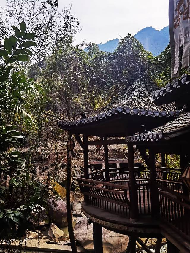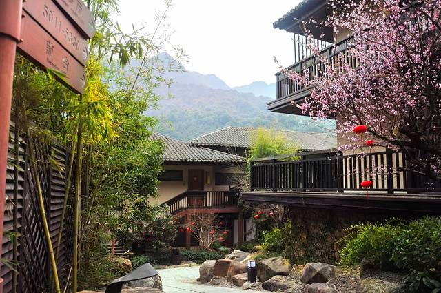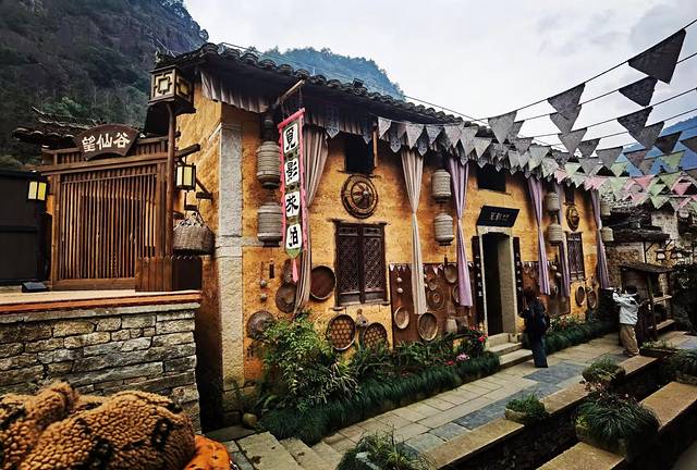 当坐着景交车进入村里的时候,首先映入眼帘的就是山崖一侧的酒店和民宿,这些酒店和民宿都是汉唐建筑风格,错落有致的蜿蜒在山坡上,与村里的其它建筑保持了一致性;独栋别墅型、中式庭院型、自带泳池型、室内温泉泡汤型,各式各样的房型,主题不同、格调也不同,“洗心院”、“月染仙居”、“枕山宿”、“竹隐山居”、“山海藏”、“仙村客驿”等名字,一听就有点如梦如幻、引人入深的感觉。别以为这里只是住宿的地方,其实这里也是一道可以打卡的风景线,在这里!可以徜徉在曲折通幽的竹径,漫步在花开四季的林间,在这里!可以休憩在庭院深深的园中,闲游在苍翠倒映的池畔,这里也是出片的一个好地方。