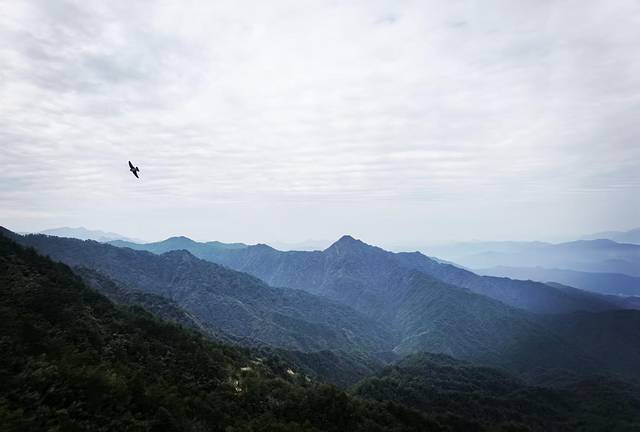 我们上山的当天,刚好阴天,太阳想出来却一直出不来,被锁在了厚厚的云层里,天空稍稍放亮一点,又暗了下来,光线始终穿不透云层,一直到我们下山,太阳都没被放出来!这两个云雾奇观也就没有眼福看到了。但阴天下的云层有着另一种味道,拍出来的效果看看也不差哈!酝酿了一下感情,写了一首打油诗,算是有感而发:山鹰林间翱,云雾空谷绕。峰顶独逍遥,仙人江湖啸。