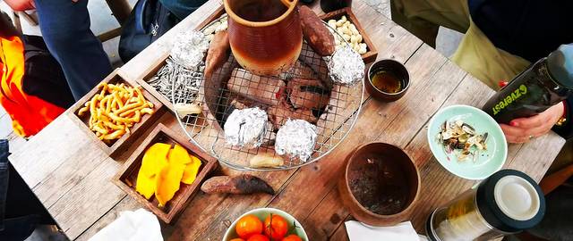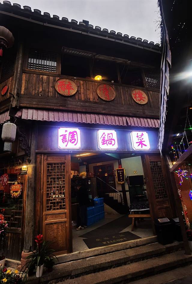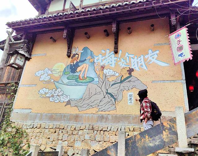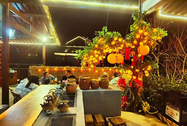 桃源酒肆还是我们这次旅行中发生一段插曲的地方,曾闹出了一个“地瓜还没熟了,屁股差点焦了”的笑话。某人由于感情太投入,又处于微醺状态,唱到情深之处,没有把控好自己的感情,一个踉跄跌坐到了围炉之上,虽然有惊无险,却让人哭笑不得! 想露一手却出尽了洋相也是始料未及。