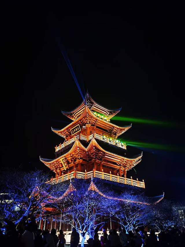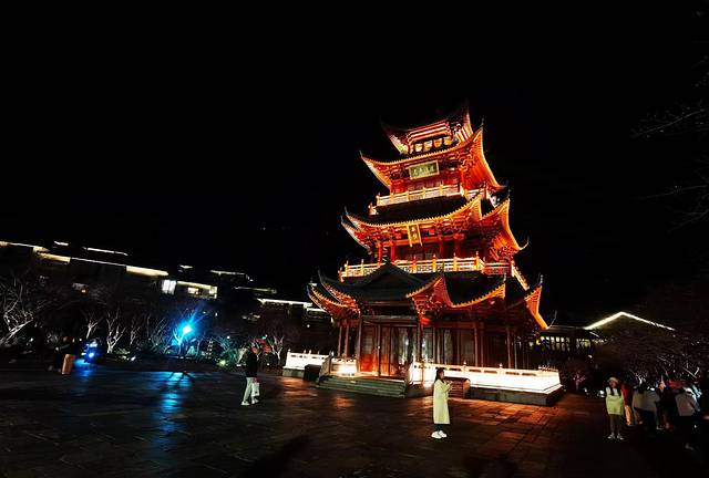 白天看众妙阁并不出彩,但夜间灯光开启后,众妙阁转瞬之间,流光溢彩,熠熠生辉,众妙阁是夜间灯光秀的主会场,最佳位置是众妙阁正对面,为了抢占最佳观赏角度,很多游客早早的霸位了!等待着一场视听盛宴的上演。