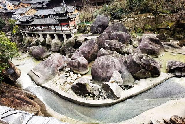 5、试剑石。这块巨大的岩石中间有一条直缝,好似被利剑劈开,民间传说这块劈石是葛玄铸了一把青龙剑后,试剑之石。