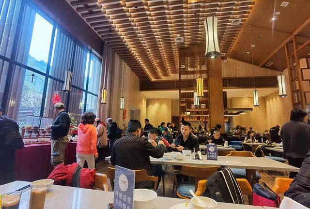 1、早餐。早餐品种算是丰富的,价值¥58.00/人,可以说是物有所值。去上饶之前,一位江西哥们再三关照:铅山烫粉一定要吃。在天元餐厅,这道特色美食被我找到了!吃后的感受两个字“好吃!”连干两碗,哈哈~还有凤梨饼和豆腐花挺合我味口,早餐各类食物吃得饱饱的,新的一天元气满满。好评!就是热饮类感觉不对劲,牛奶和咖啡清淡如水,有偷工减料之嫌疑,与其如此,还不如干脆没有,有了反倒成了瑕疵。差评!说明一下,吐槽的并非我一人。