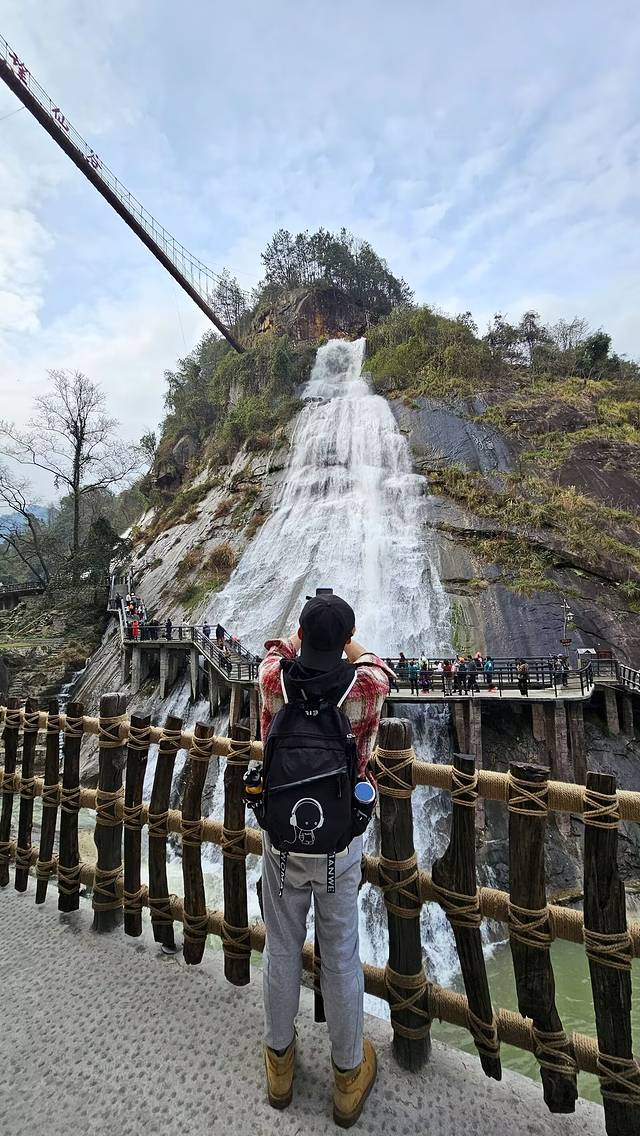 4、彩虹瀑、观音瀑和山清瀑。这三道瀑布正对着悬崖民宿,先声夺人、吸人眼球,无论在崖上俯视还是在谷底仰望,这三道瀑布都挺有气势,我觉得这三道瀑布是整个望仙谷的华彩部分,不过我发现了这三道瀑布的一个秘密,它原来是人工控制的!在山顶上有一个储水的水槽带,每个瀑布的顶端还有个出水口,所以!水大水下可以管控的哈。如果你没有看到飞流直下三千尺的场景,那……可能是没放水吧。我是看到大场面了!哈哈~有人说这是人工瀑布,假的!我倒以为可以管控的瀑布,挺好的呀!