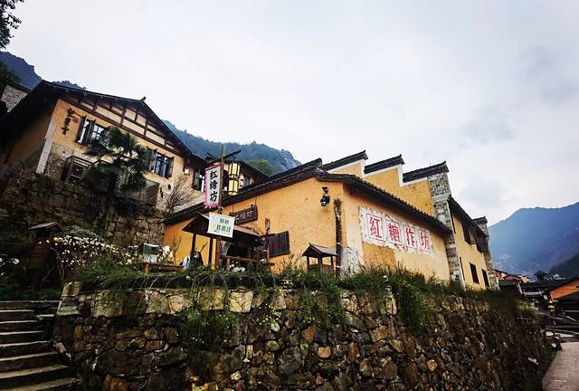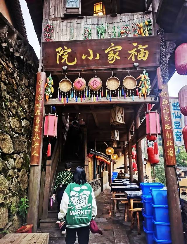 1、地理位置。福家小院土钵菜馆位于下到谷底的半山腰上,一边就是三神庙,在菜馆对面的悬崖旁遥看谷底,角度不错;醉霄楼调锅菜馆位于谷底的塑望街上,对面是望仙谷邮局,属于景区四通八达的中心位置。