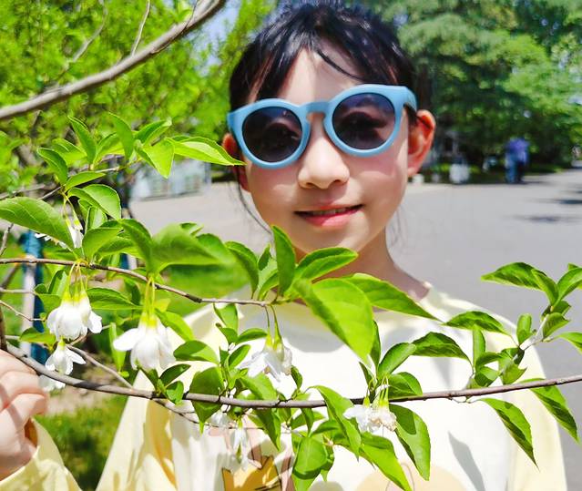 于是,我兴高采烈地来到了藏春亭,低头寻寻觅觅,始终没有找到它的踪迹。这时,妈妈发现了一棵大约五米高的树,树上的花朵是纯白的,样子也和茉莉花相似,但它们都耷拉脑袋。我想,世界上有茉莉树吗?茉莉花难道不是盆栽的吗?我怀揣着好奇心,打开了拍照识花软件,结果显示是野茉莉!我一蹦三尺高,喊道:“我们找到茉莉花了!”花瓣像雪一般纯白,摸上去又软又滑,拥抱着金灿灿的花蕊。凑近闻了闻,香气迷人,让我沉醉其中。我开心地唱起那首江苏民歌《茉莉花》。“好一朵美丽的茉莉花,芬芳美丽满枝桠,又香又白人人夸。”