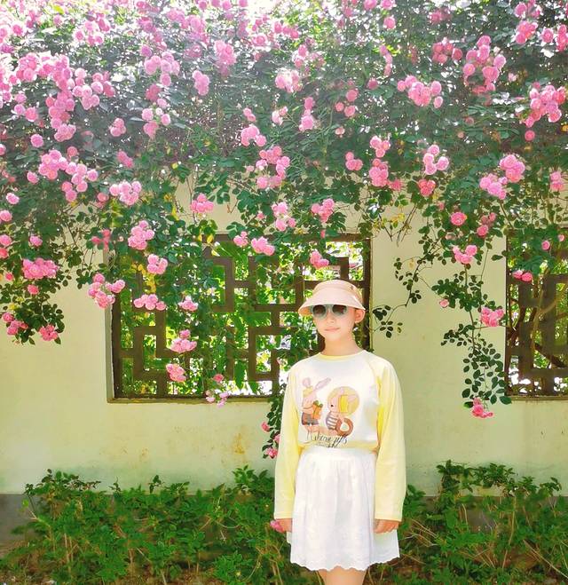 刚进入樱洲,映入眼帘的是蔷薇花墙。我瞬间被它的美貌吸引住了。粉红的花朵一朵挨着一朵,花瓣层层叠叠,摸上去像羽毛般轻柔。蔷薇花朵就像诗中的佳人,婉约而娇艳,微风轻拂,在绿叶的舞台上轻盈地舞动。