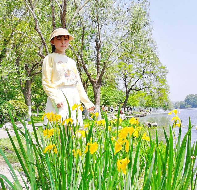 离开了樱桃园,我们悠闲地走到了湖边。眼前的黄色菖蒲真美呀!纤长青翠的叶片上,有的花朵卷曲着,有的下垂着。一阵熏风吹过,它们宛如一个个黄色的小精灵翩翩起舞,寂静的湖边又添了一份灵动之美。妈妈说:“下一站是你最喜欢的茉莉花!”