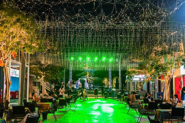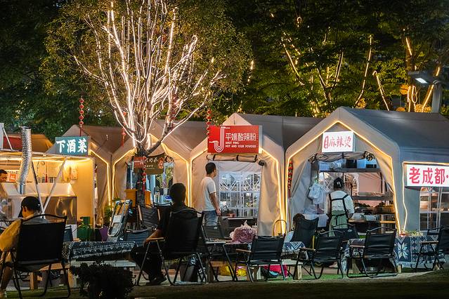 马岭河夜间消费集聚区的体验丰富多样,有星光集市、星光餐车集市、后备箱集市、滨河餐厅等等,每一个区域都格局特色,很值得体验。