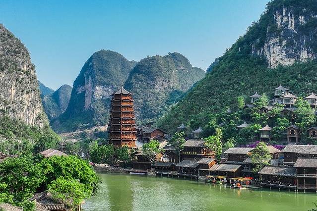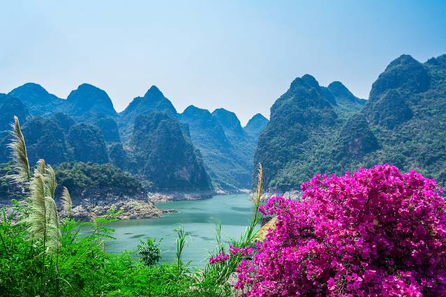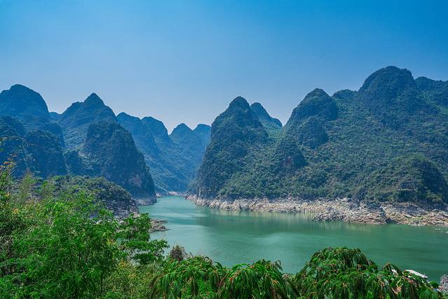 来黔西南,万峰湖是不可错过,大自然亿万年的造化神奇,将你带入一种超凡脱俗的诗画妙境。乘坐游船于万峰湖上,水天一色的湖面荡起层层涟漪,两岸万峰叠翠,峰水相映,美得如诗如画。