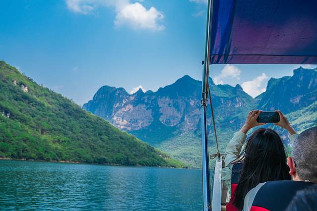 ✅乘船游览北盘江大峡谷的感觉很赞,有快艇和普通游船两种,快艇往返约1小时,普通游船往返约2.5小时。