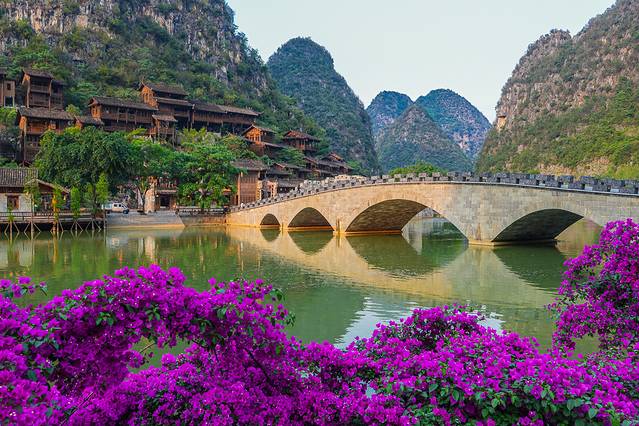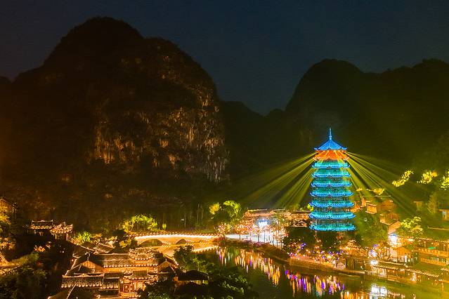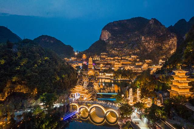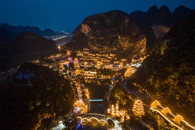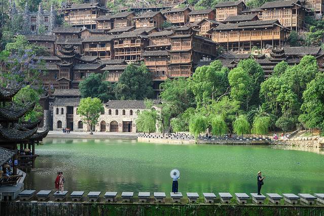 🌃白天和夜晚的感受很不相同,白天是袅袅炊烟、绿水青山的古朴风情,夜晚的景色更沉浸、更梦幻。