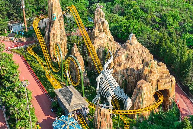 这里的娱乐项目非常的多,旋转木马、惊险世界、跳楼机、过山车、碰碰车、星际航行、丛林空中漂流等等。
