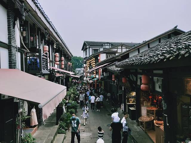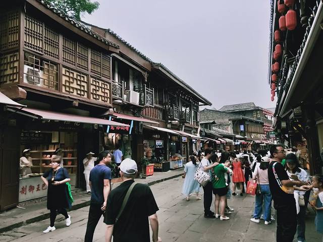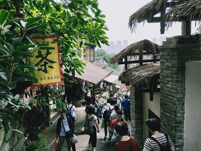 古镇依山而建,以磁器口正街和横街为骨架,42条巷道垂直于正街和横街呈枝状发展,形成特征明显的树枝状平面格局,每条街巷都人满为患,好不热闹
