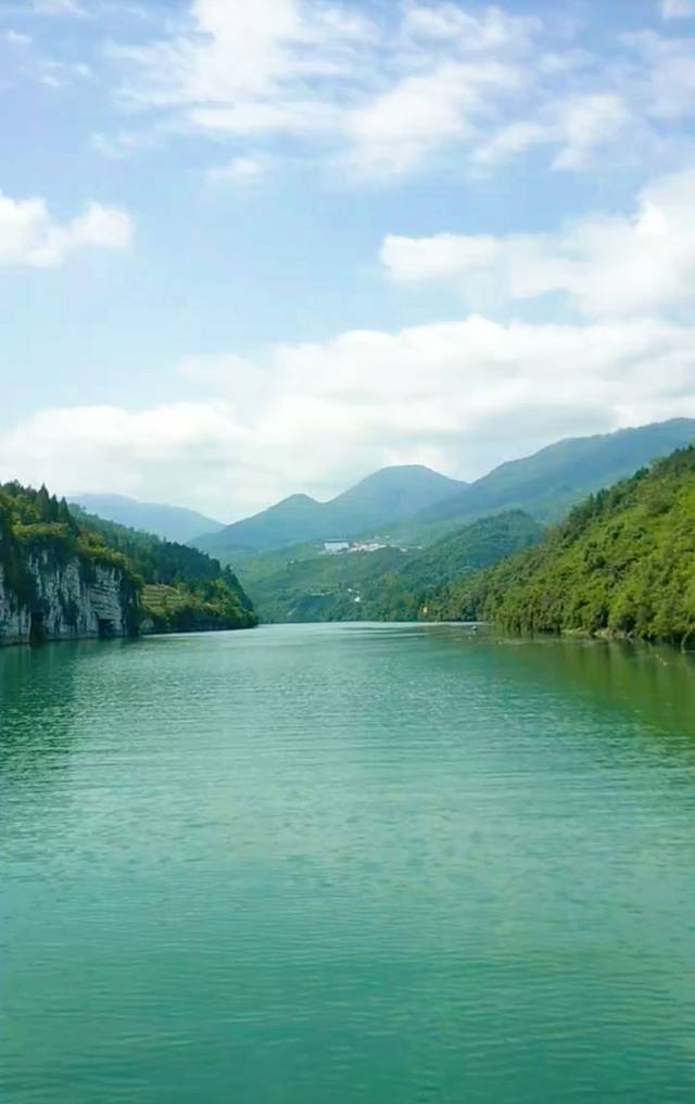 江水呈现碧绿的颜色,船在水中行,人在画中游,千里乌江,百里画廊美誉名副其实