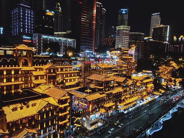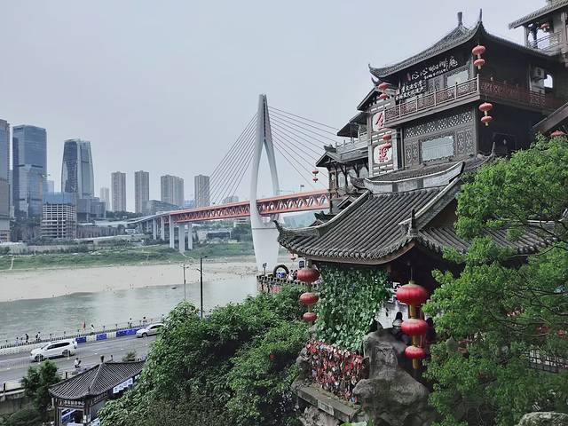 洪崖洞位于重庆市沧白路、长江、嘉陵江两江交汇的滨江地带。以巴渝传统建筑特色的"吊脚楼"风貌为主体,依山就势,沿江而建,解放碑直达江滨