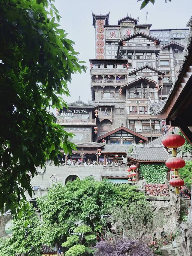 逛到下午3点左右轨道交通原路返回酒店,晚上6点左右老爸不想动了,我和老公出发洪崖洞,李子坝,看看李子坝穿楼的网红景点以及洪崖洞夜景