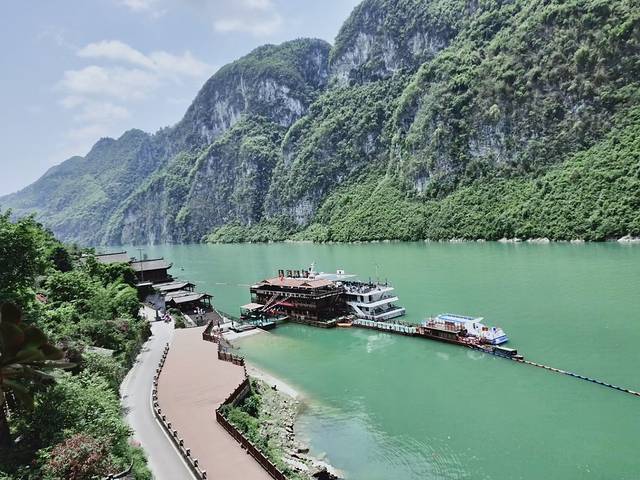 打车50元直接去了彭水万足码头,今天想去龚滩古镇,去龚滩古镇可以去客运站坐大巴,也可以坐船去,我们选择了坐船,因为可以游览风景优美的乌江百里画廊,乌江百里画廊位于酉阳土家族自治县西陲,为重庆市和贵州省的界河,集自然山水,历史古镇,民俗风情于一体的风景名胜区,图片那个双层的大船就是我们要乘坐的,船票180元/人,然后如果选择二层需要加20元,二层拍照视野更好,游船行驶时长2个半小时左右,终点就是著名的龚滩古镇,距今1800年了