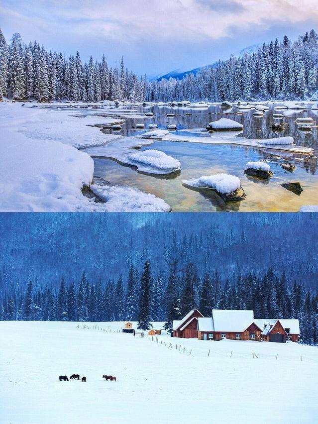虽然冬天的禾木很美,但是毕竟太冷了➕交通不便,所以是旅行淡季,禾木最好的禾木山庄价格也不高,一晚💰三四百这样,布尔津在150左右
