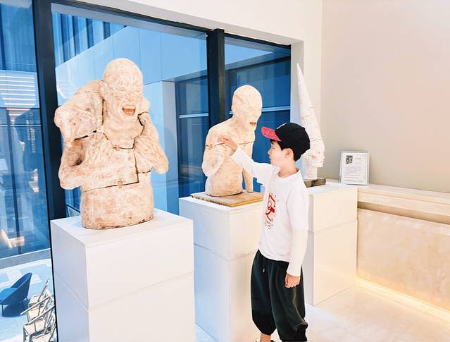 天和美术馆酒店,充满了艺术细菌的地方,酒店自带美术馆,安静,悠然,房间也很大,电动窗帘,电动马桶,有浴缸,酒店自带观景平台,也能看到海,但有一定的距离,离葡萄滩海水浴场走路五分钟,离市内景区近一些。有早餐,但必须吐槽一下,对于酒店的其他配置来说,这个早餐必须给差评,种类少得可怜,没有煎蛋,没有咖啡机,就粥+鸡蛋,再加炒饭和几样炒菜,对于儿童都58💰的价格,太不值当了。订的亲子房带了三份早餐,补了个儿童的,第二天干脆果爸就点的外卖。