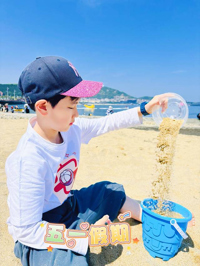沙滩最细的浴场,不得不说,威海的海水,真是蓝而清澈,孩子们在海边乐此不疲的挖沙,堆城堡,妈妈们在拍照留念,而我跟妹妹,果爸,又逛了火炬八街,喝了网红咖啡,坐在海边,吹着海风,看人来人往,看形形色色的人儿拍照打卡,旅行笑脸,也是一种享受。