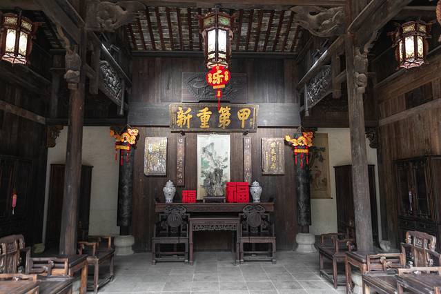 飞檐翘角的屋顶、精美的木雕和石雕、古色古香的回廊庭院,每一处都流露出浓厚的历史底蕴和文化气息。