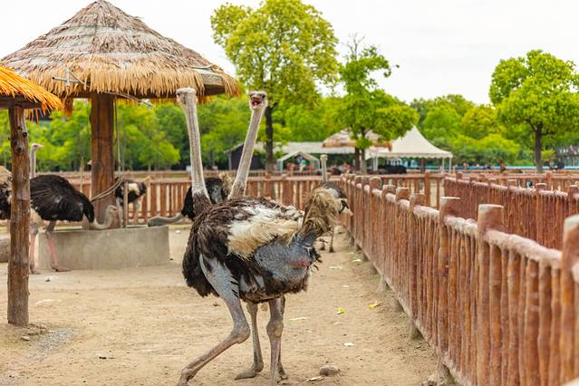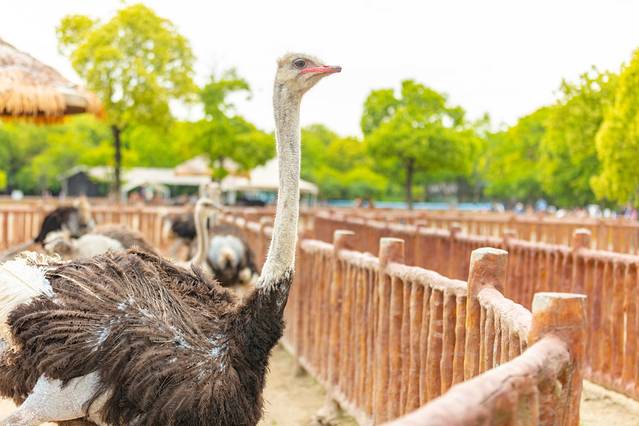 如果是亲子家庭,这里还有个萌宠乐园,千万不要错过。鸵鸟的头部宽大,眼睛虽小但炯炯有神,相当可爱。