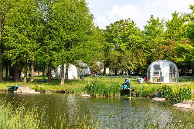 听着树叶与风的合奏,人从城市中短暂抽离,回归山野,心旷神怡!营地有星空泡泡屋,帐篷等等,拍照打卡也很出片哦!