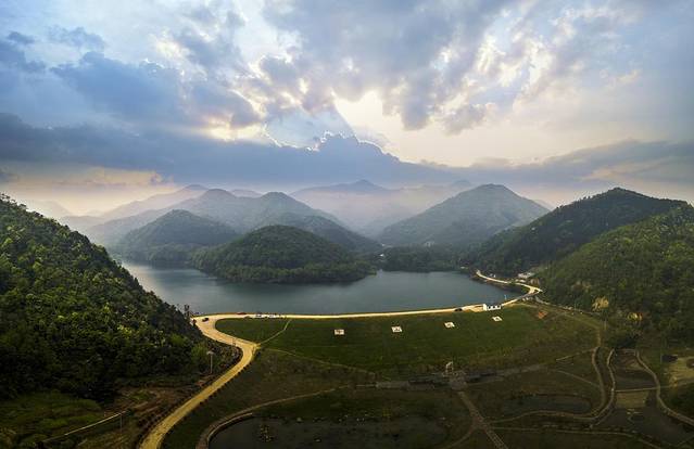 在南陵县的山水之间,有一处名为千山水库的地方,它静静地坐落在群山环抱之中,宛如一颗镶嵌在大地上的蓝宝石。登上水库大堤,首先映入眼帘的是那清澈蔚蓝的水面,仿佛一面巨大的镜子,映照着天空的色彩。空气中弥漫着泥土和植物的清新气息,让人不由自主地深呼吸,享受着这份难得的宁静。
